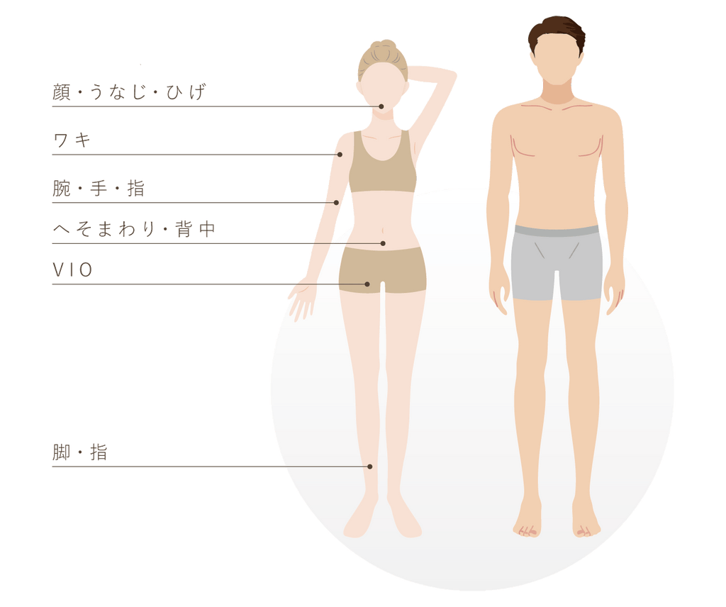 史上最高峰の照射パワーによって顔や脇、VIOなどの濃い毛まで全身脱毛可能です。