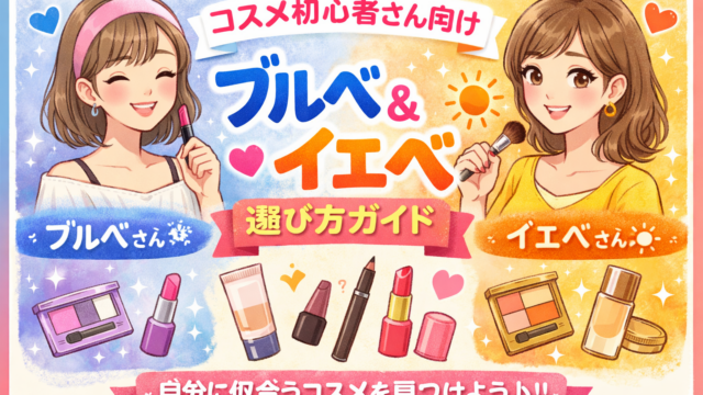 コスメを使ってみたいけど、何から買えばいいかわからない...」そんなコスメ初心者さんのために、迷わず選べるコスメ選びのコツをやさしくまとめてみましたなブルベ・イエべってなに?(やさしく解説)コスメ選びでよく聞く「ブルベ(ブルーベース)」「イ...